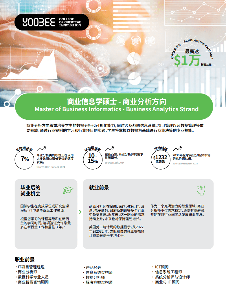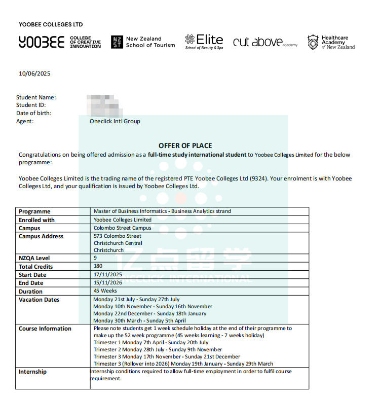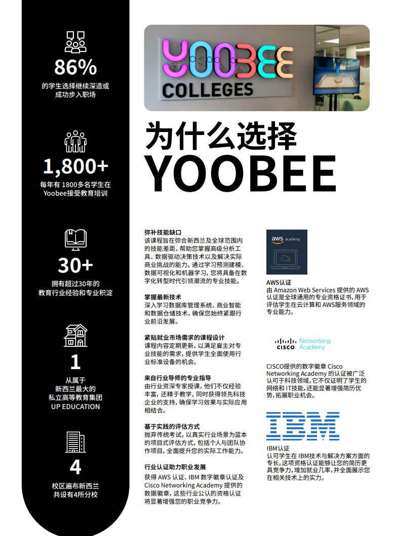 目前,Yoobee学院 在 奥克兰和基督城 两地均开设商业分析硕士课程,为像X同学这样的家庭提供了更多选择。